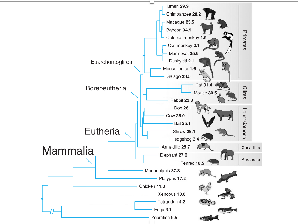 The euarchontoglires probably split from the laurasiatheria sister group about 85 to 95 million years ago during the.